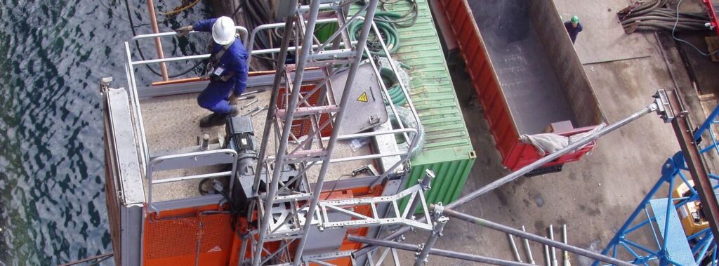 Alfa Consulting Ingenieria > Portfolio > Ascensores de obra > Ascensor sobre el agua y sin pared para arriostrar – RIG 140